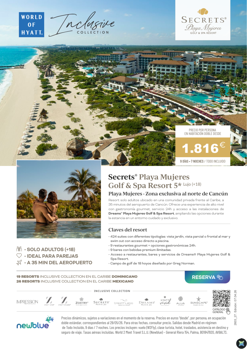 Playa Mujeres (MEX): Playa top cliente premium desde 1.816€ T.I 9D/7N- Secrets Playa Mujeres - Solo Adultos